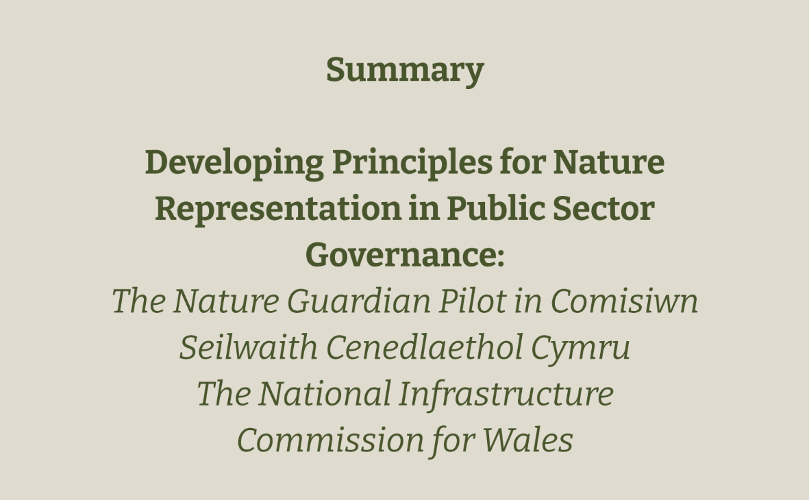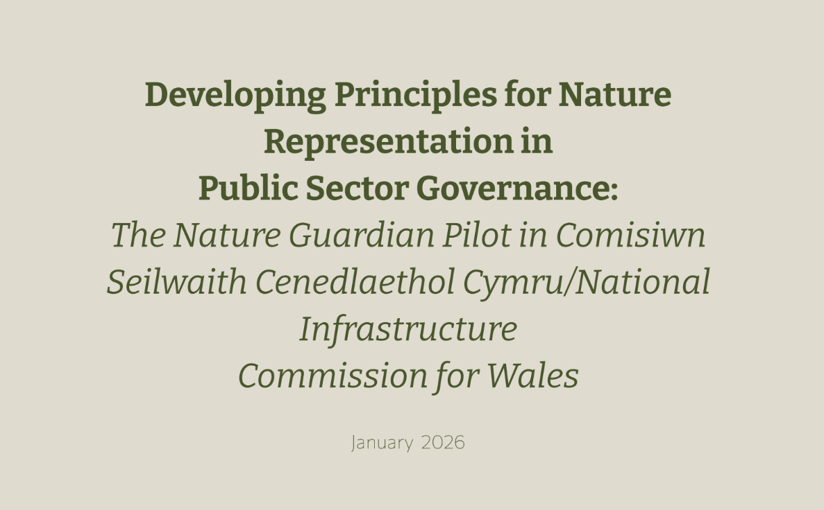 Commissioned by the National Infrastructure Commission for Wales following their Nature Guardian pilot, this report examines the opportunities and challenges of representing Nature within governance structures and identifies a set of foundational principles to inform other public bodies.